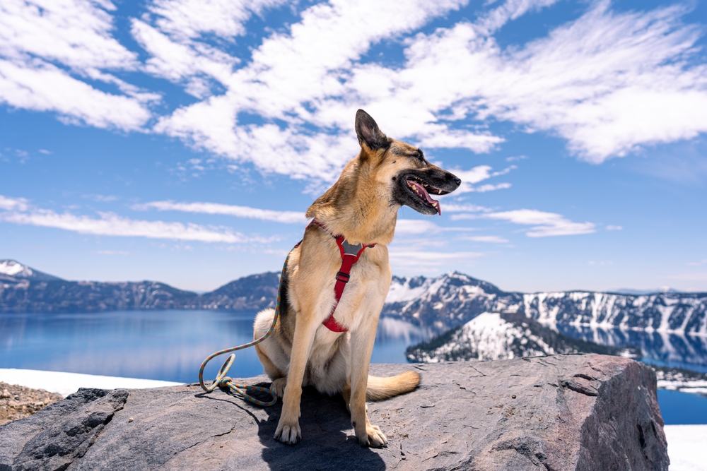 The park permits one leashed pet per person in Mazama and Lost Creek Campgrounds, all picnic areas, established roads, and walkways. As long as there is no significant snow, your pooch can join you on the following hiking trails: